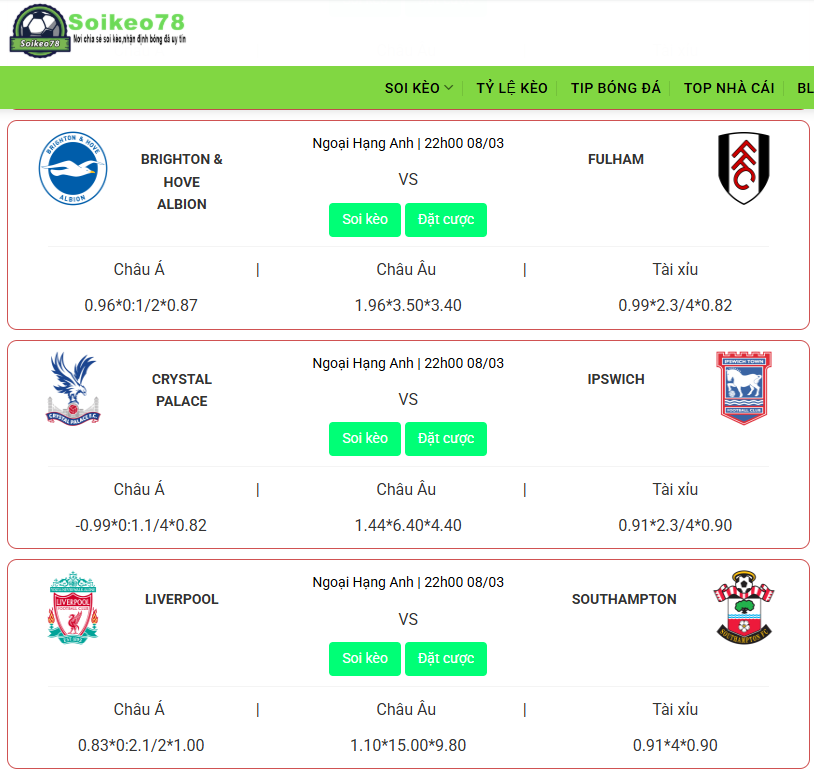 Kèo nhà cái – Nhận định , dự đoán ,tỷ lệ kèo bóng đá , soi kèo nhà cái hôm nay xanh chín tại webstie soikeo78