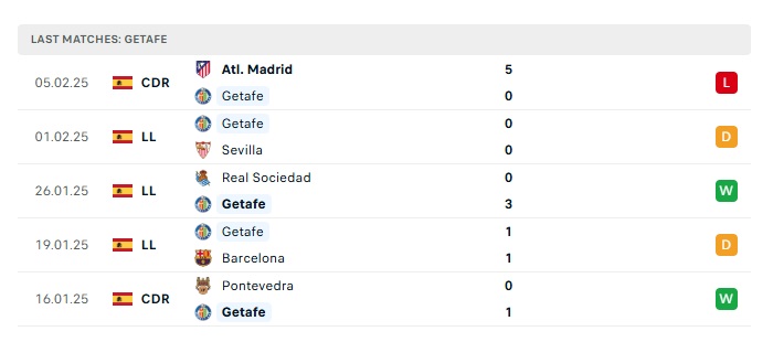 • Phong độ gần đây  Getafe