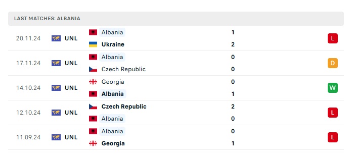 - Phong độ gần đây Albania