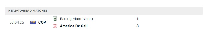 Lịch sử đối đầu America Cali vs Racing Montevideo