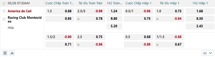 Bảng tỷ lệ kèo bóng đá America Cali vs Racing Montevideo