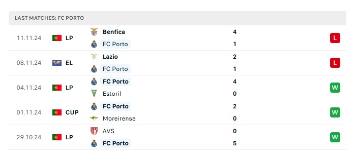 - Phong độ gần đây Porto