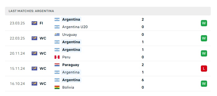 - Phong độ gần đây Argentina