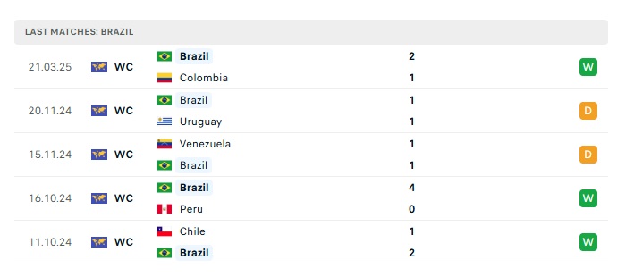 - Phong độ gần đây Brazil