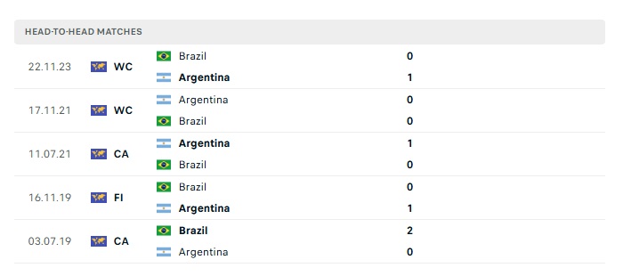Phong độ gần đây Argentina vs Brazil