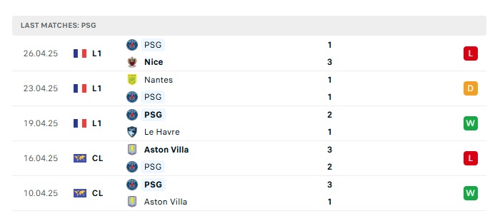 - Phong độ gần đây PSG