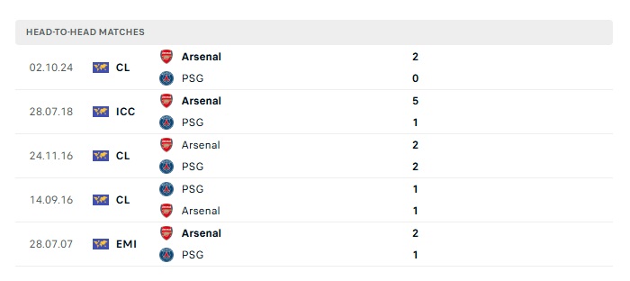 Lịch sử đối đầu Arsenal vs PSG