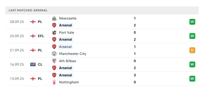 Phong độ gần đây Arsenal  vs West Ham Utd