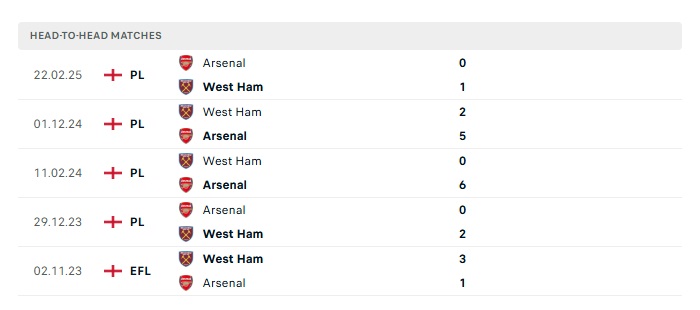 Lịch sử đối đầu Arsenal vs West Ham Utd
