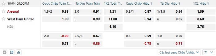 Soi kèo châu Á, kèo Arsenal vs West Ham Utd