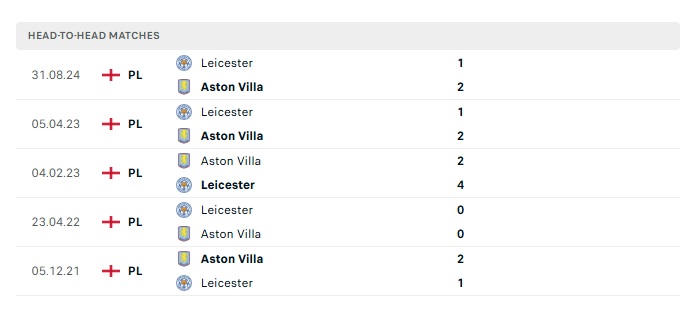 Lịch sử đối đầu Aston Villa vs Leicester City
