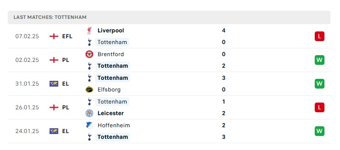 - Phong độ gần đây Tottenham