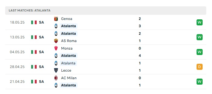 • Phong độ gần đây Atalanta