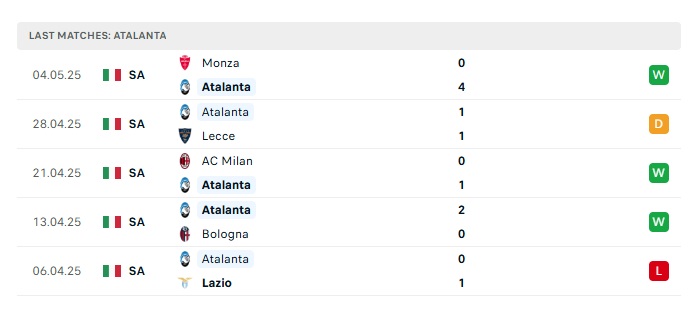 • Phong độ gần đây Atalanta
