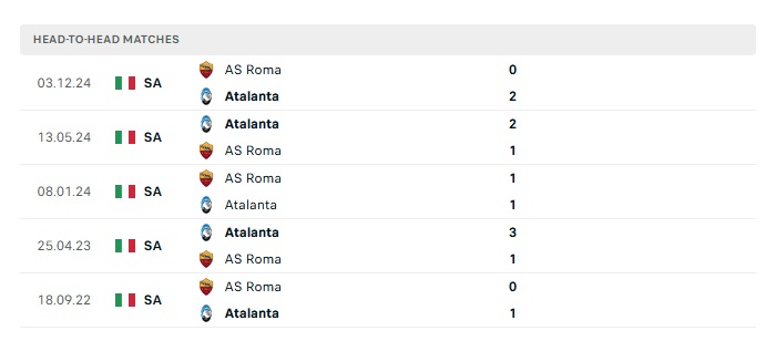 Lịch sử đối đầu Atalanta vs Roma