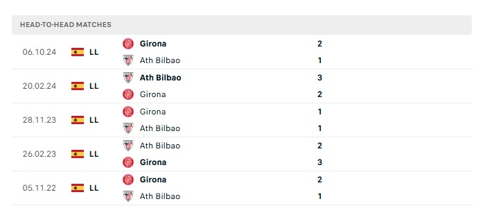 Lịch sử đối đầu Athletic Bilbao vs Girona