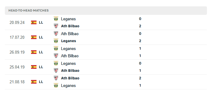 Lịch sử đối đầu Athletic Bilbao vs Leganes