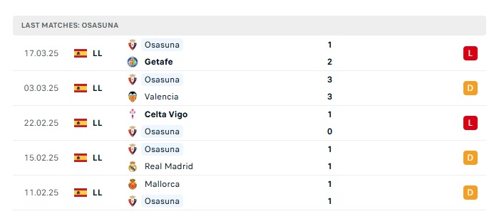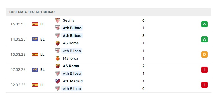 Phong độ gần đây Athletic Bilbao vs Osasuna