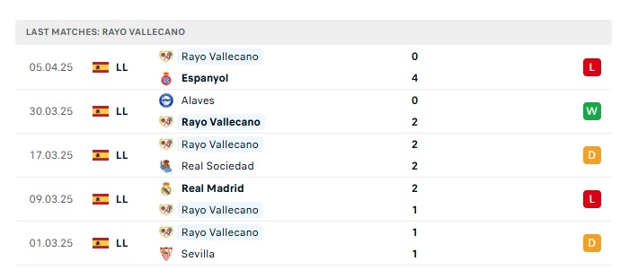 - Phong độ gần đây Rayo Vallecano