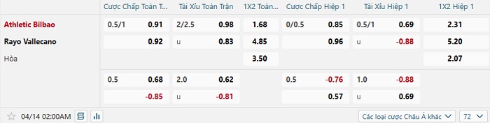 Bảng kèo nhà cái Athletic Bilbao vs Rayo Vallecano