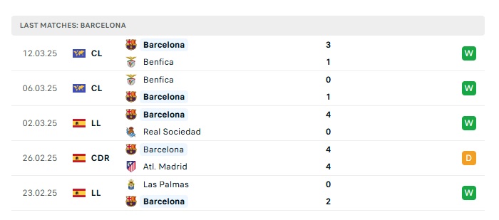 - Phong độ gần đây Barcelona