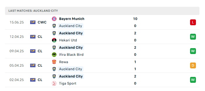 - Phong độ gần đây Auckland City