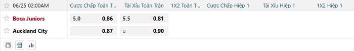 Bảng tỷ lệ kèo bóng đá Auckland City vs Boca Juniors