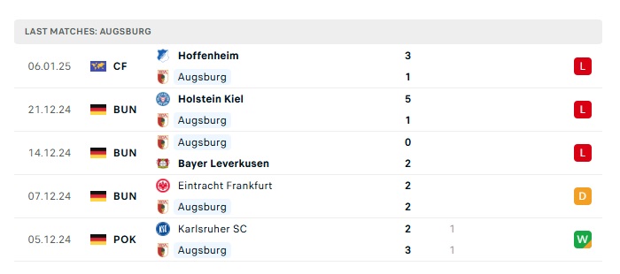 Lịch sử đối đầu Augsburg vs Stuttgart