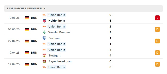 - Phong độ gần đây Union Berlin