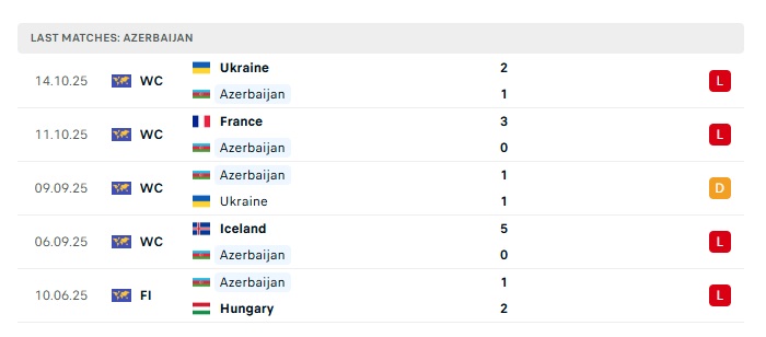 Phong độ gần đây Azerbaijan vs Iceland