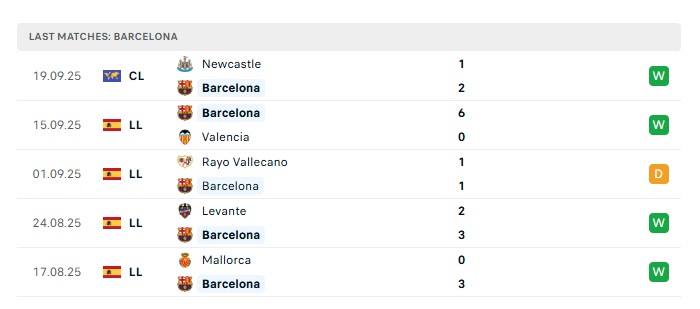 - Phong độ gần đây Barcelona