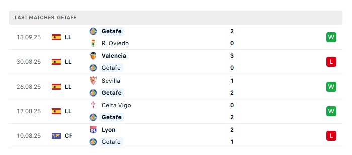 - Phong độ gần đây Getafe