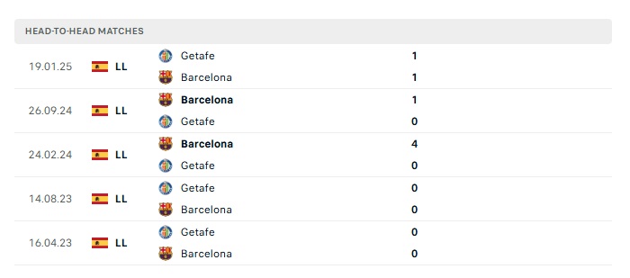 Lịch sử đối đầu Barcelona vs Getafe