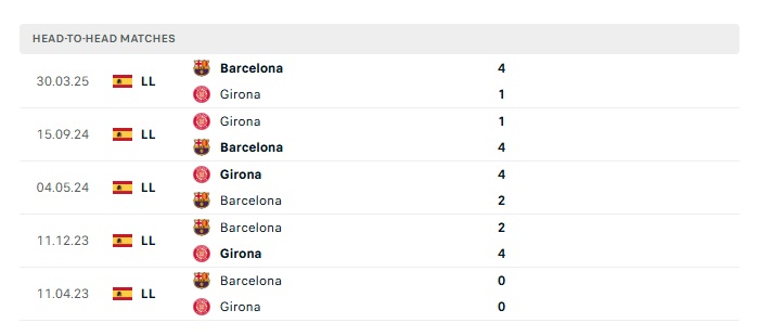 Lịch sử đối đầu Barcelona vs Girona