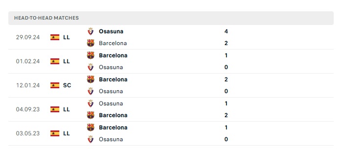 • Kèo tỷ số H2 Barcelona vs Osasuna: 4-1