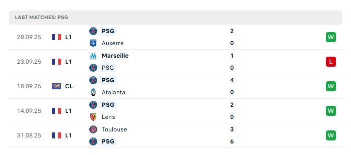 - Phong độ gần đây PSG
