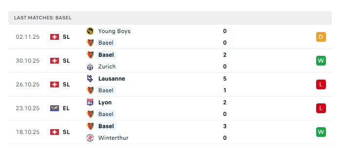 - Phong độ gần đây Basel