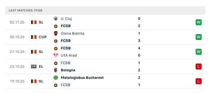 - Phong độ gần đây Steaua Bucuresti