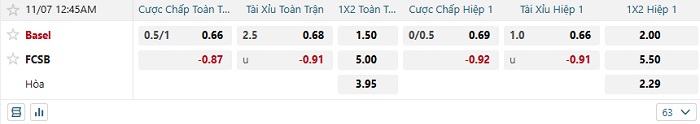 - Kèo tỷ số H1 Basel vs Steaua Bucuresti: 1-0