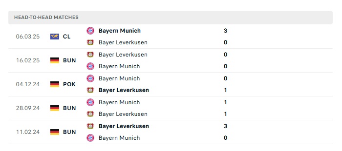 Lịch sử đối đầu Bayer Leverkusen vs Bayern Munich