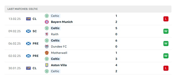 - Phong độ gần đây Celtic