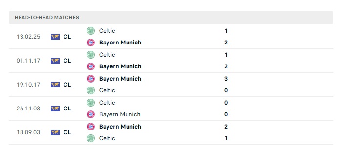 Lịch sử đối đầu Bayern Munich vs Celtic
