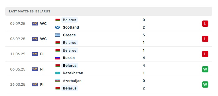 - Phong độ gần đây Belarus
