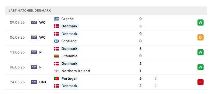 - Phong độ gần đây Đan Mạch