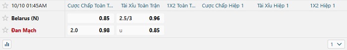 Bảng tỷ lệ kèo nhà cái Belarus vs Đan Mạch