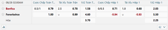 Bảng kèo bóng đá Benfica vs Fenerbahce