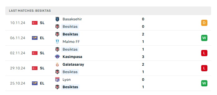 - Phong độ gần đây Besiktas