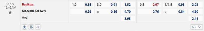 Bảng tỷ lệ kèo bóng đá Besiktas vs Maccabi TA