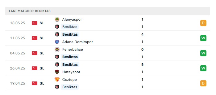 - Phong độ gần đây Besiktas