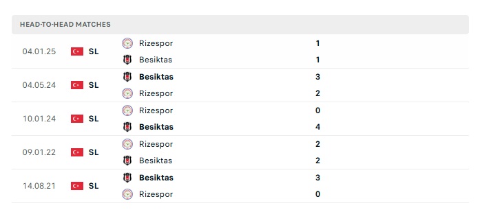 Lịch sử đối đầu Besiktas vs Rizespor